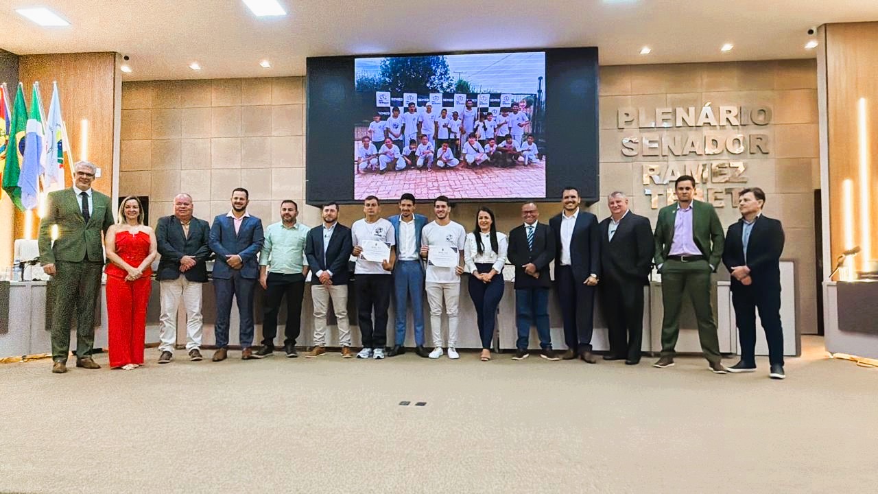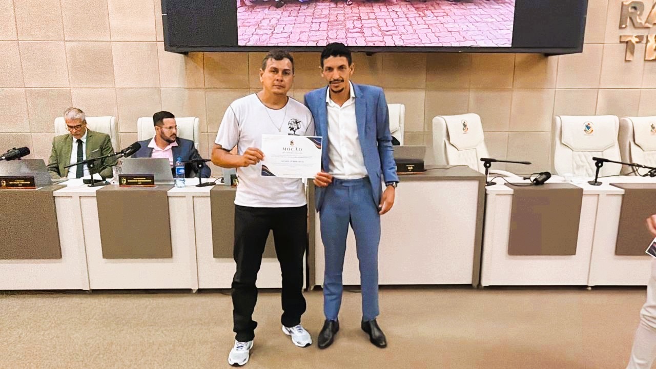 Na Sessão Ordinária desta segunda-feira, dia 2, o vereador Jeferson da Silva dos Santos, o Jefinho, homenageou com uma Moção de Aplauso o professor Leonardo Fernandes Pereira e o capoeirista Gelson Pereira Ruis, da Escolinha de Capoeira da FUNCERB, em reconhecimento aos relevantes serviços prestados à cultura, à educação e ao desenvolvimento social de Rio Brilhante.